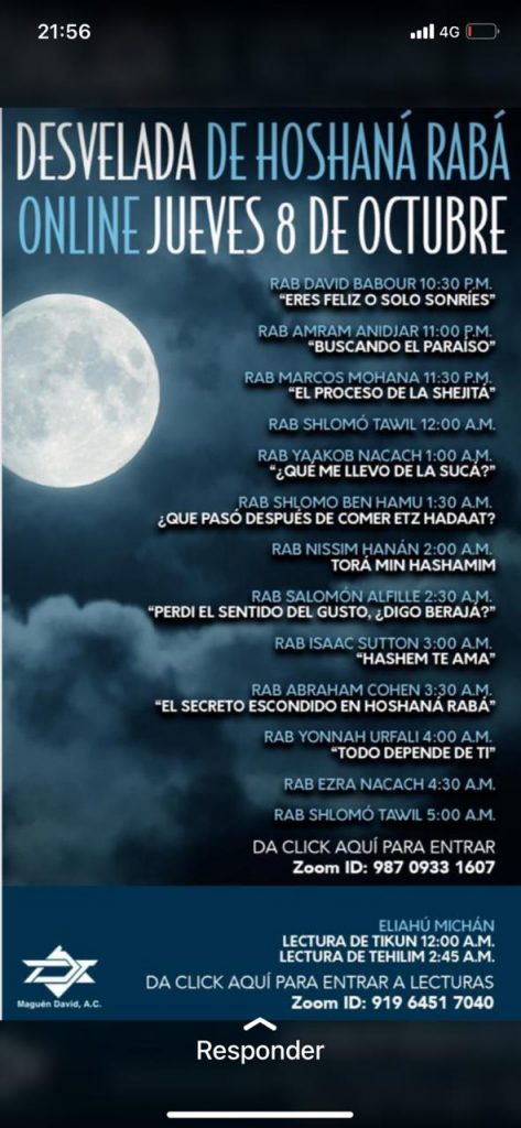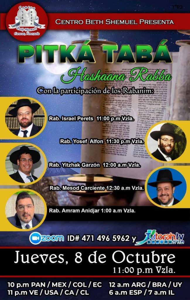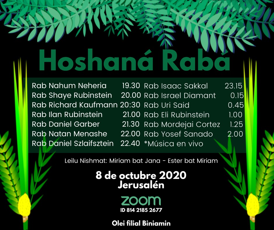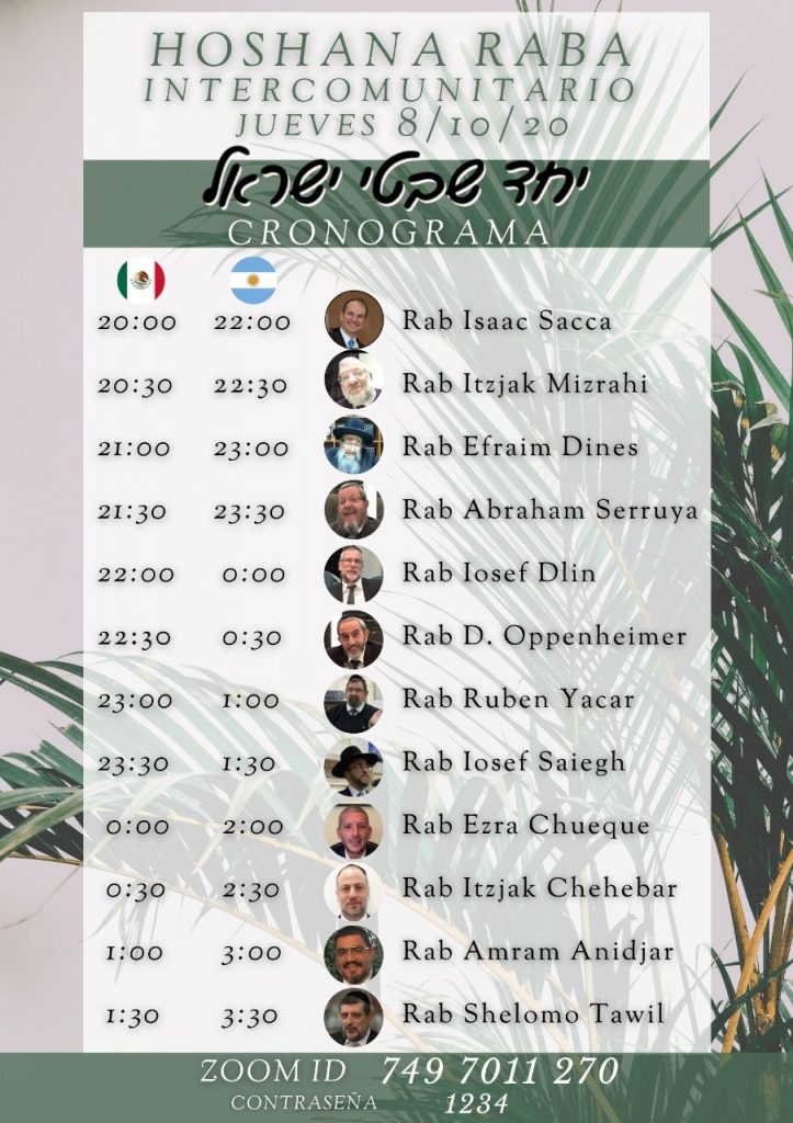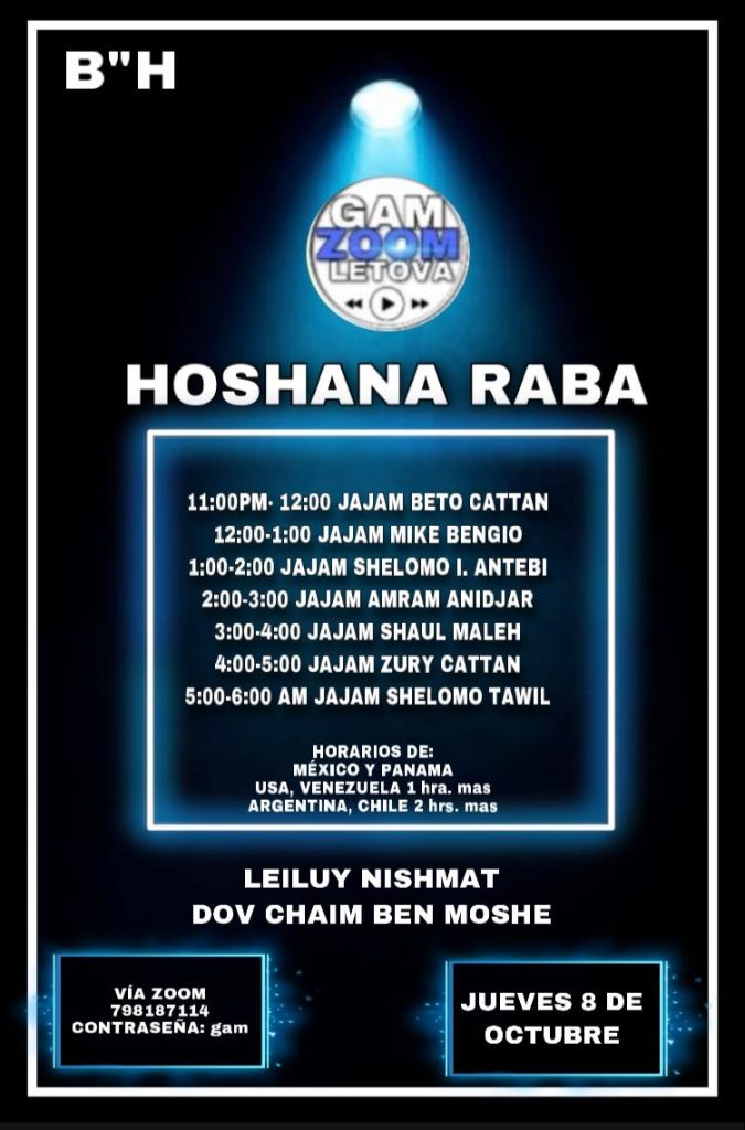 Programas de Shiurim por zoom para la noche de Hoshaná Rabá