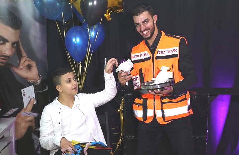 Foto: El mago EMT Aharon Avital en el cumpleaños número 11 de Adam.