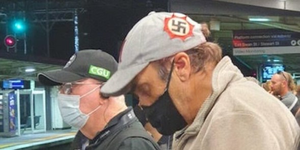 Un descendiente de sobrevivientes del Holocausto de 23 años vio a un hombre con un sombrero con una esvástica en la estación de tren de Melbourne el viernes y fotografió la inquietante vista.