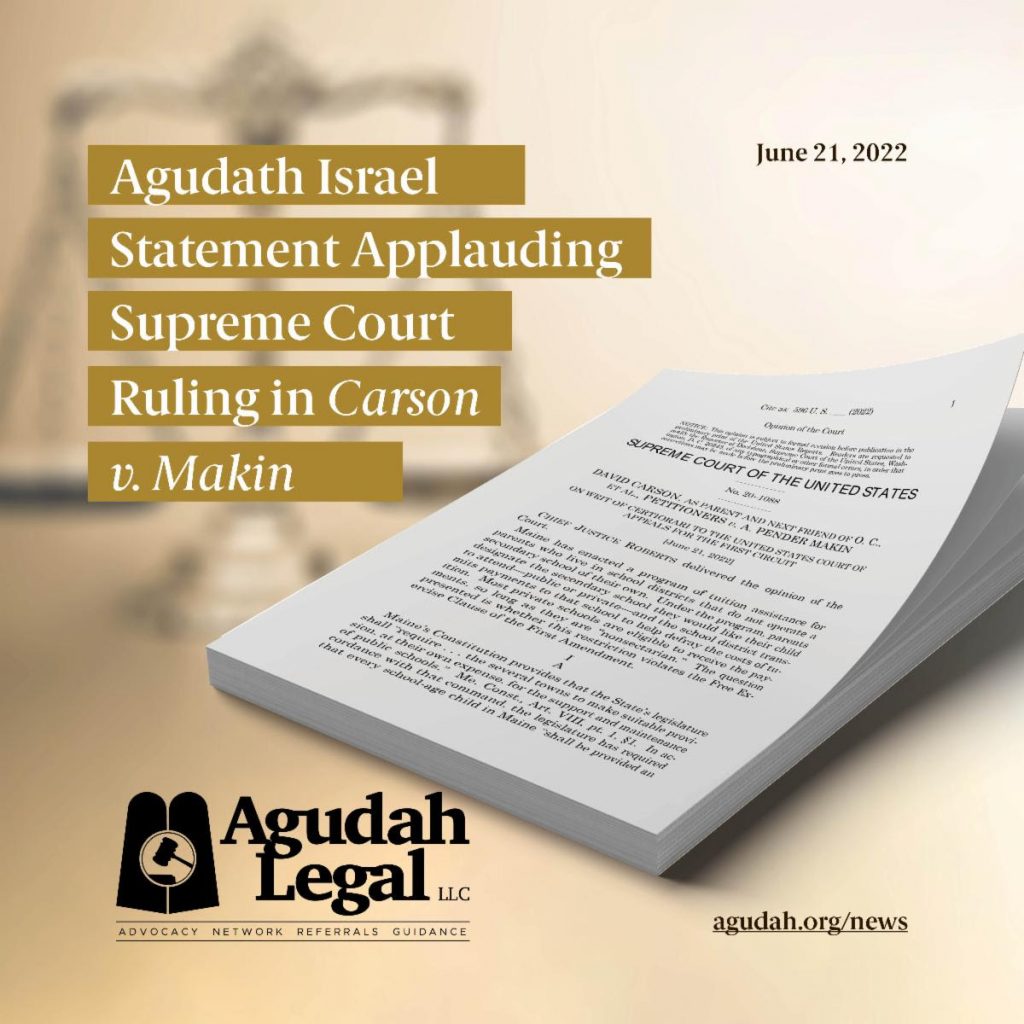 El rabino Abba Cohen, vicepresidente de asuntos gubernamentales de Agudath Israel y director de Washington, elogió la decisión. “Agudath Israel ha estado luchando contra la discriminación religiosa durante décadas y continuaremos haciéndolo. Estamos encantados de que la Corte Suprema haya dejado en claro que la discriminación contra la instrucción religiosa en los programas de ayuda estatal es una violación constitucional. Otros estados que tienen disposiciones de ‘no ayuda’ en sus constituciones y leyes estatales pueden sentirse libres de promulgar ahora programas que alienten o brinden asistencia a las escuelas religiosas en igualdad de condiciones con otras escuelas no públicas”.