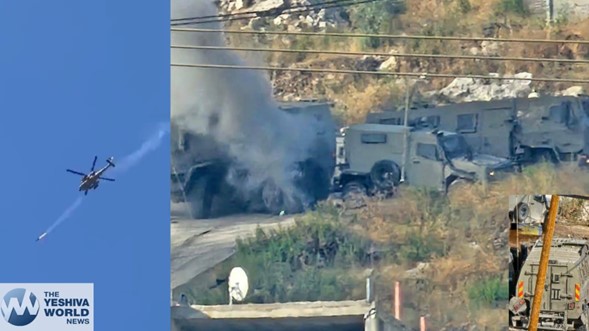 Foto: Un helicóptero de combate de las FDI dispara contra terroristas en Jenin mientras 5 soldados heridos de las FDI son evacuados bajo fuego.