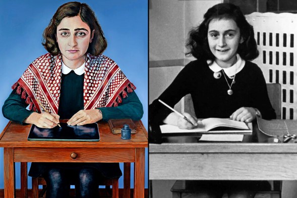 Perversión moral: Se presenta una denuncia policial tras una obra de arte en Alemania que representa a Ana Frank con una keffiyeh