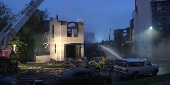 Ilustrativo: Los restos de la sinagoga Adas Israel en Duluth Minnesota después de que fuera destruida por un incendio, el 9 de septiembre de 2019. Foto: captura de pantalla.