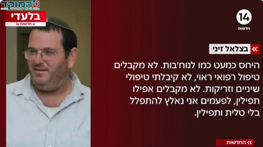 “El trato es casi como el de los terroristas de Nukhba”, dijo Zini con dolor. “No recibimos lo más básico; a veces vivimos con una rebanada de pan”. Añadió que le niegan sus derechos religiosos más básicos. “Ni siquiera nos ponen Tefilín… a veces tengo que rezar sin Talit ni Tefilín”.