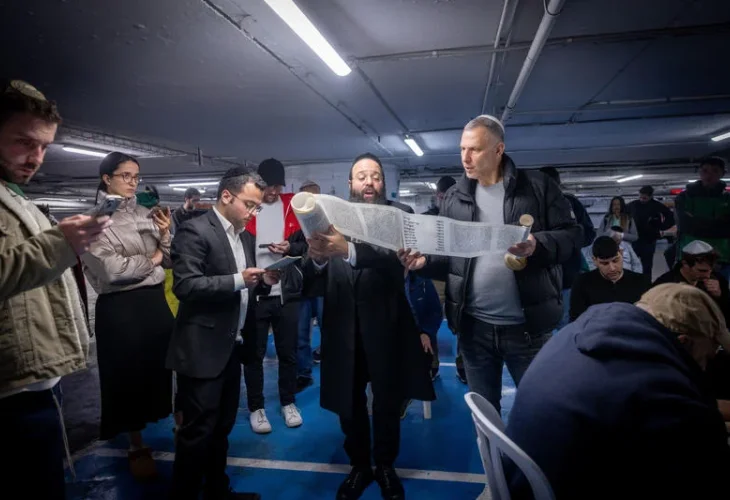 En todo Israel, durante la primera noche de Purim, se celebraron lecturas de la Meguilá en refugios antiaéreos, pabellones hospitalarios fortificados, puestos militares de primera línea y aparcamientos subterráneos, mientras las restricciones del Comando del Frente Interno, que limitaban las reuniones públicas, redefinían la forma en que las comunidades celebraban la festividad. Desde el centro de Tel Aviv hasta el frente de Gaza, los israelíes trasladaron las lecturas tradicionales de las sinagogas a espacios protegidos, garantizando así la lectura del Libro de Ester incluso mientras el país permanecía en alerta máxima.