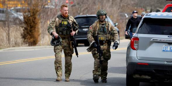 Foto. Agentes del FBI trabajan en el lugar después de que la Policía Estatal de Michigan informara de un tiroteo en curso en la sinagoga Temple Israel en West Bloomfield, Michigan, EE. UU., el 12 de marzo de 2026. Foto: Rebecca Cook vía Reuters Connect