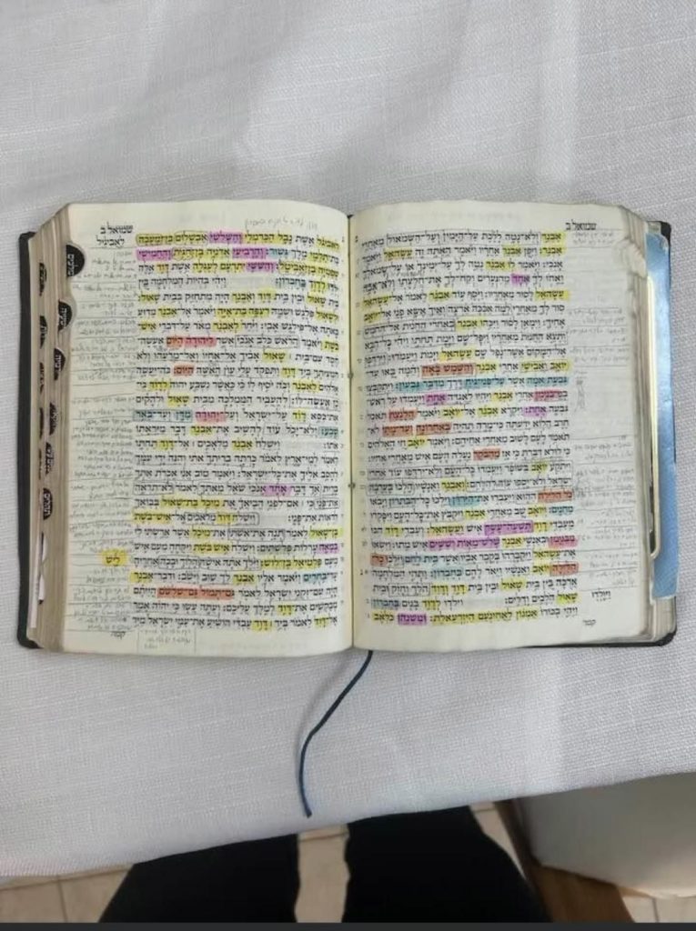 Ayer, en el encuentro semanal del grupo “Mitjadshot” llevado a cabo por zoom, fue entrevistada Hodaya Cohen, quien obtuvo el primer lugar en el Concurso Mundial de Biblia para jóvenes, junto con su madre, Hila. Vimos cómo es la Biblia personal de Hodaya, con la que estudió para el concurso: hay un color distinto para cada tema, innumerables resúmenes y anotaciones, y todo esto hecho con amor y dedicación. Les pedí que dieran algunos consejos y recomendaciones para nosotros.